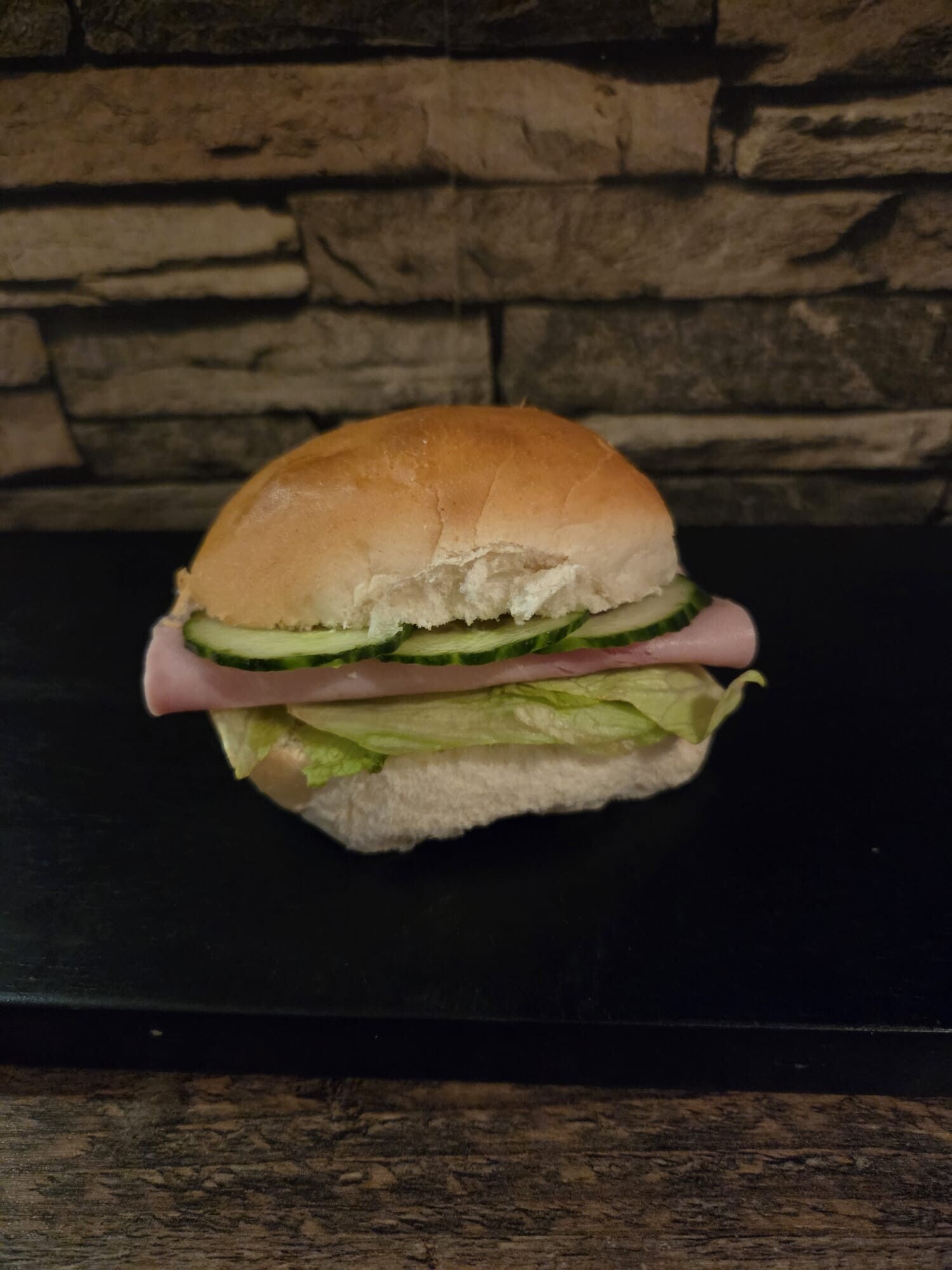 Zacht Broodje belegd met. Ham, komkommer, sla